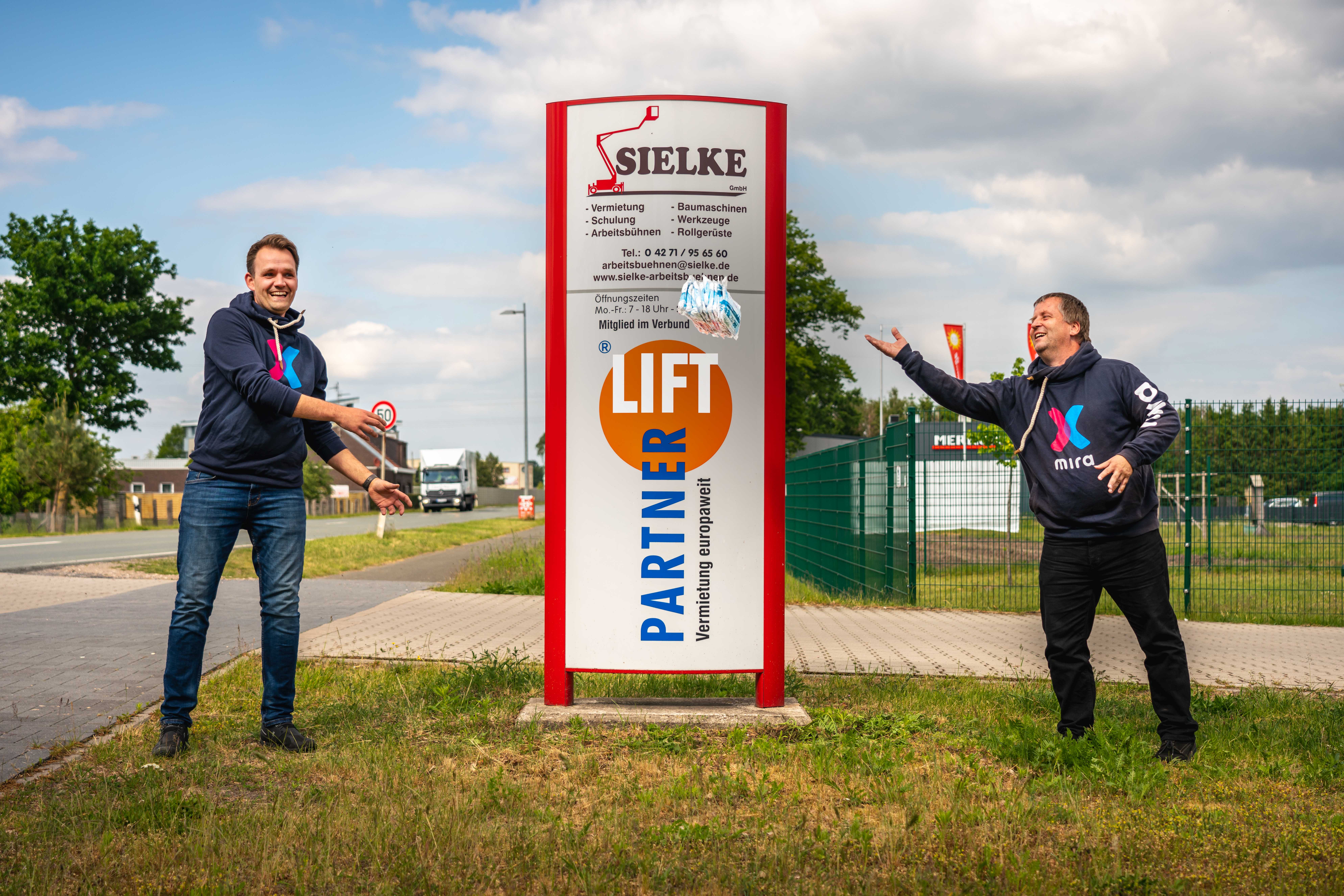 Die Herausforderung, bei der Übergabe der Masken den Mindestabstand zu wahren, konnte gemeinsam mit Steffen Sielke von der Fa. Sielke Arbeitsbühnen gemeistert werden. "Wir hoffen, dass sich die Situation weiter stabilisiert und wir irgendwann sagen können, dass wir diese Krise gemeinsam besser gemeistert haben als ohne die Gemeinschaft der PartnerLIFTer. Dies ist nämlich grundsätzlich unser Motto bei PartnerLIFT." schließt Kai Schliephake dieses kurze Gespräch ab