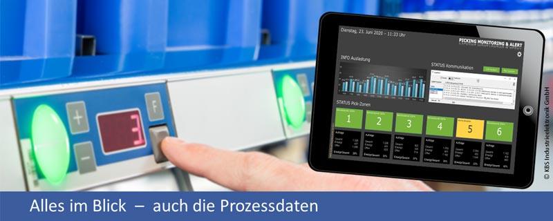 Monitoring-Assistenten für Pick by Light Kommissioniersysteme ermöglichen auf Basis gesammelter Prozessdaten eine aktuelle Diagnose, um Probleme schnell beheben und Optimierungspotentiale erkennen zu können.