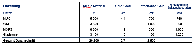 Tabelle 4 Waihi Distrikt Vorhersage Mühlenmaterial