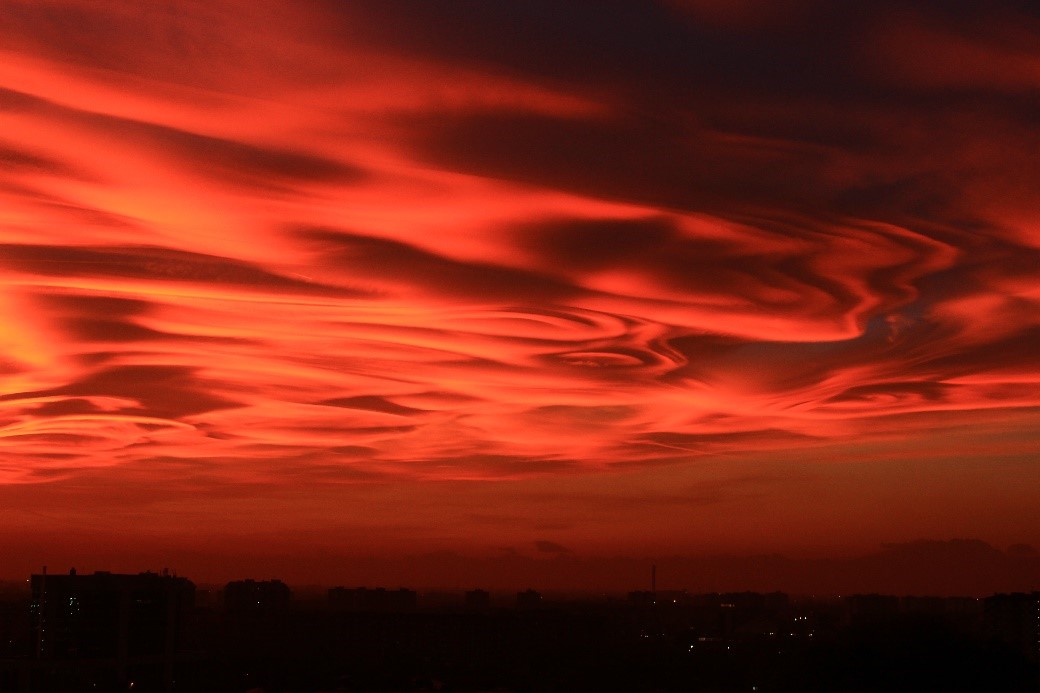 Die meteocontrol GmbH, das Karlsruher Institut für Technologie (KIT) und der Deutsche Wetterdienst untersuchen im Rahmen des Forschungsprojekts PermaStrom die Auswirkung von Aerosolen auf die Solarstromproduktion. Waldbrände in den Alpen färbten beispielsweise 2017 den Mailänder Abendhimmel tief rot und beeinflussten Wolkenbildung und solare Einstrahlung / Bildquelle: meteocontrol GmbH / Daniel Lassahn