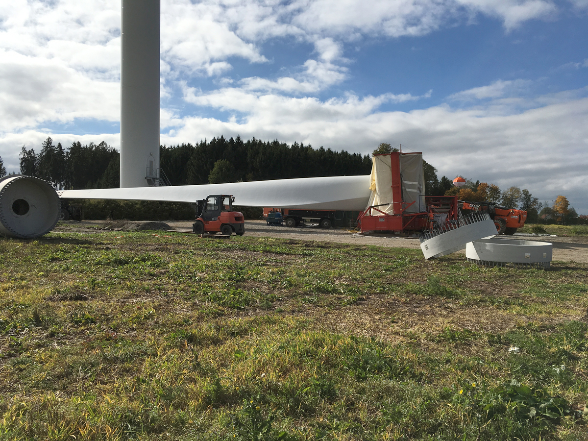 Umweltgerechte vor-Ort-Zerlegung von Rotorblättern entlastet den Straßenverkehr und bereitet für eine möglichst hohe stoffliche oder energetische Verwertung vor. (Foto: VEOLIA Umweltservice West GmbH)