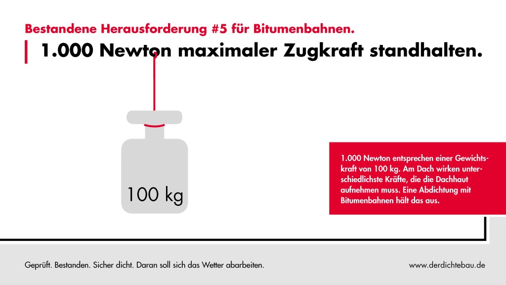 Bitumenbahnen im Härtetest – Teil 5 Bis zu 1000 Newton Zugkraft halten Bitumenbahnen stand.