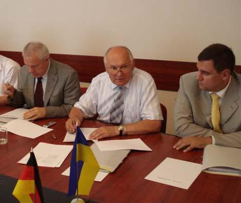 Bei der Vertragsunterzeichnung am 1. Juli 2008 in Krementschuk, Ukraine (v.l.n.r.): Valeriy Asadchev, Mikola Glukov, Ruslan M. Kamarenko
