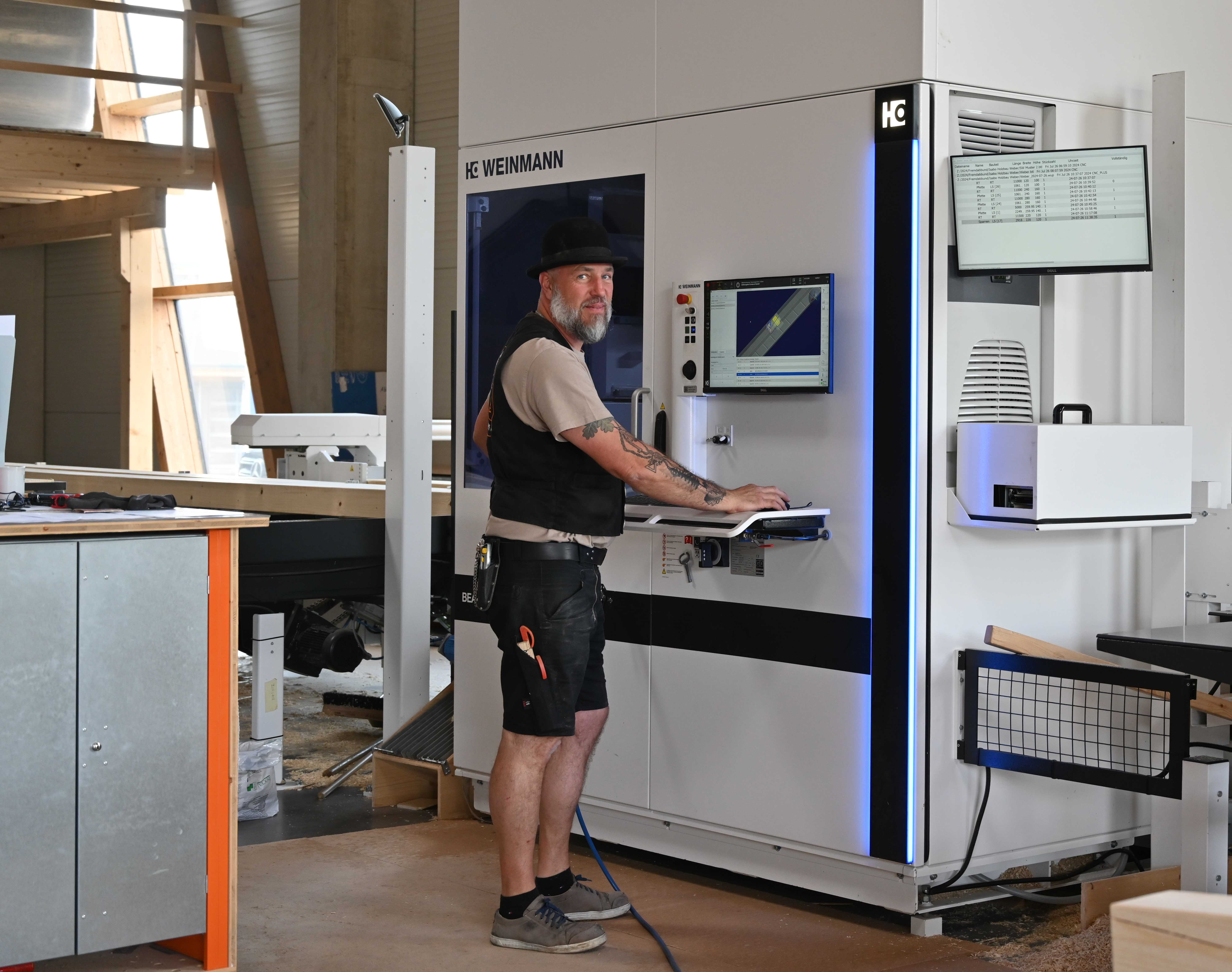 Handwerkstradition und modernste Maschinentechnik gehen bei Fluck Holzbau Hand in Hand. Für Zimmermeister Thomas Müller gehört computerunterstützter Abbund zur arbeitstäglichen Routine.