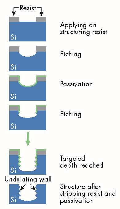 Figure 4: Steps for orthogonal etching using the DRIE process