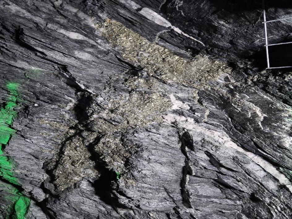 Abbildung 1: Sichtbare Sulfidmineralisierung in der unteren Schwellenentwicklung.
