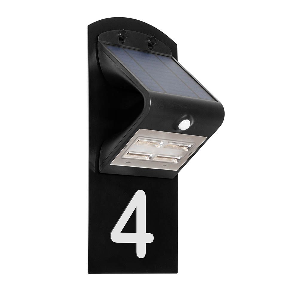 Klein, supermodern, im Betrieb völlig CO2-neutral: die Solar-Außenleuchte LEONARDO mit massiver Rückplatte zur Aufnahme der Hausnummer