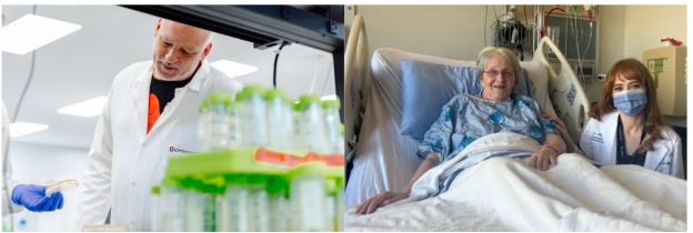 links: Cytophage CEO in den kanadischen Laboren des Unternehmens / rechts: Patientin, die im Februar 2024 behandelt wurde, zusammen mit der behandelnden Ärztin Dr. Azad