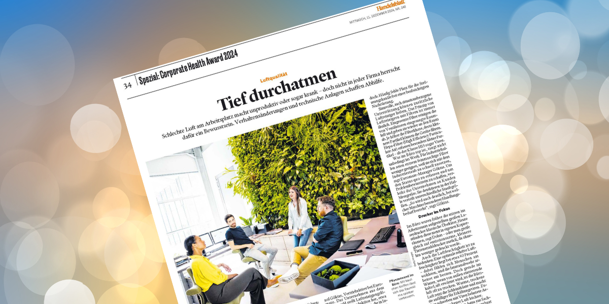Im Rahmen der Verleihung des Corporate Health Award schreibt das Handelsblatt über Luftqualität in Büro und Produktionsumgebung. Dazu holte der Verfasser auch die Expertise von Seniol Göktas, Euromate Gmbh, ein.