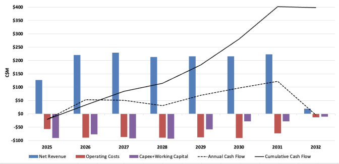 Abbildung 1: Cashflow-Profil der Mine Madsen nach Jahr