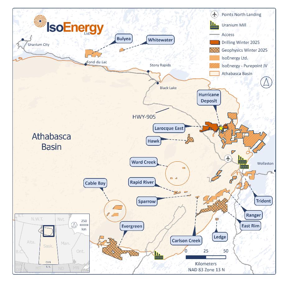 Abbildung 1 - Lage der Explorationsprojekte von IsoEnergy im östlichen Athabasca-Becken.