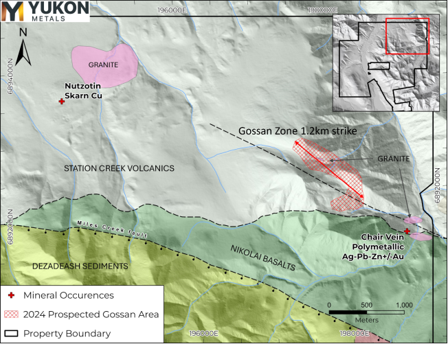 Abbildung 6 - Geologie des Gebiets Chair Mountain aus Israel et. al, 2007 mit Granitkartierung aus AR 094599 und dem Feldprogramm 2024 von Yukon Metals.