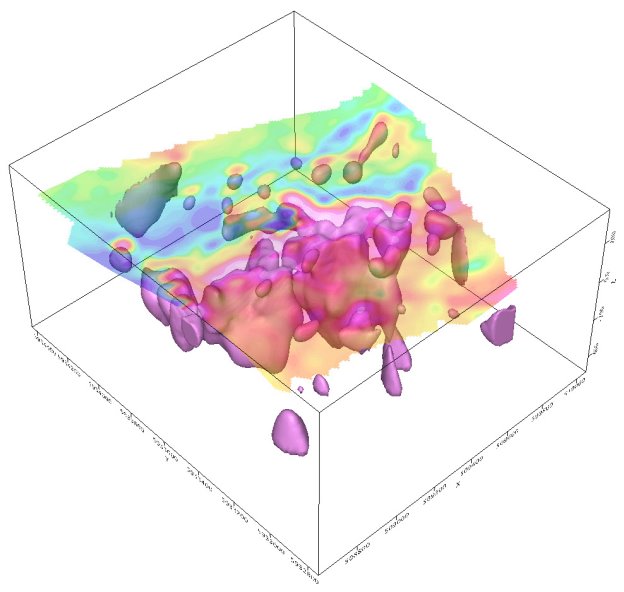 Magnetische Inversion der Zone Hawkeye nach Nord-Nordost gerichtet. Suszeptibilität-Cut-Off von > 0,02.