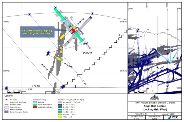 Abbildung 2: Querschnitt durch Bohrloch AM-24-05 auf Alwin Mine