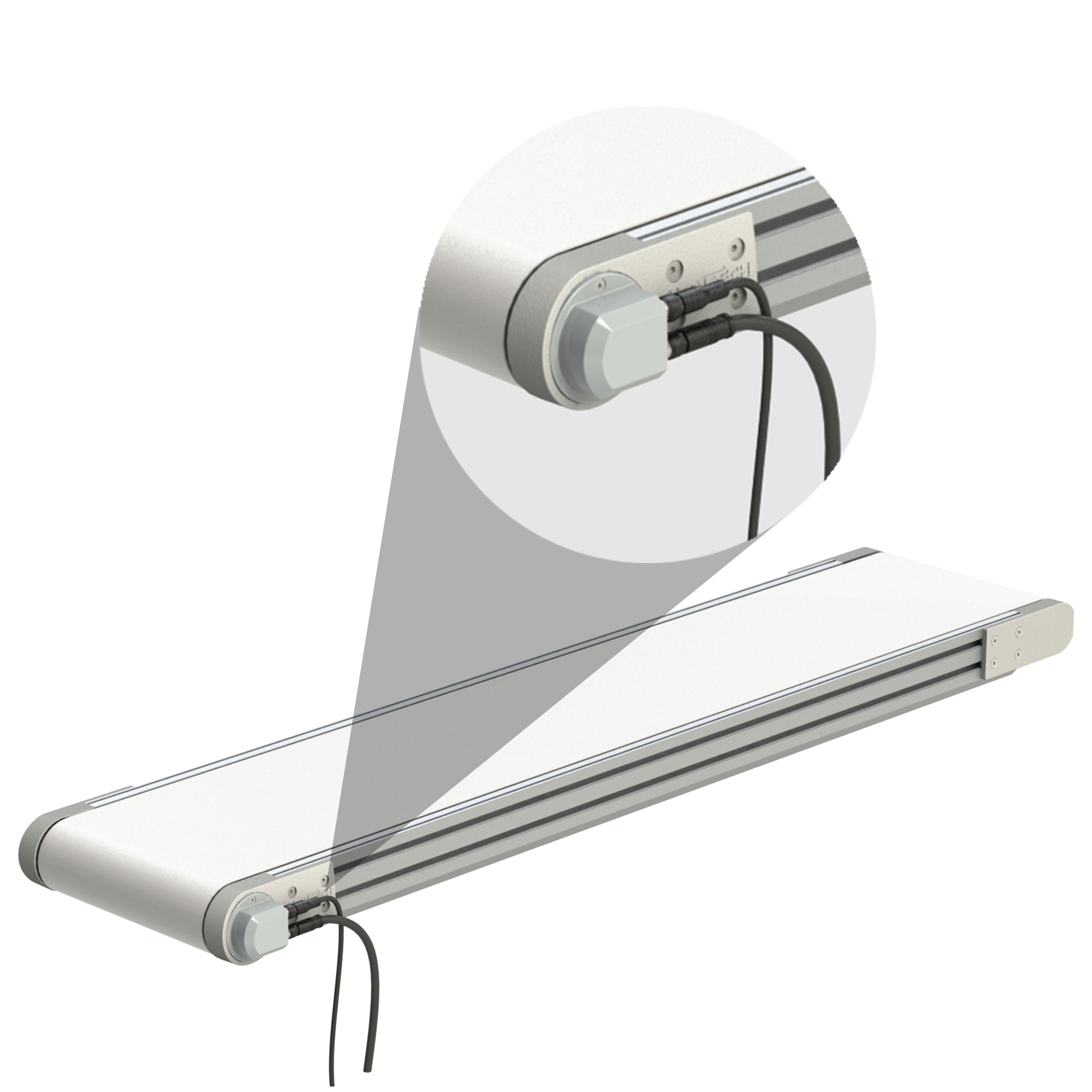 Das Förderband TB40 mit abgewinkeltem Motoranschluss und neuen Kabeln für höhere Betriebssicherheit.