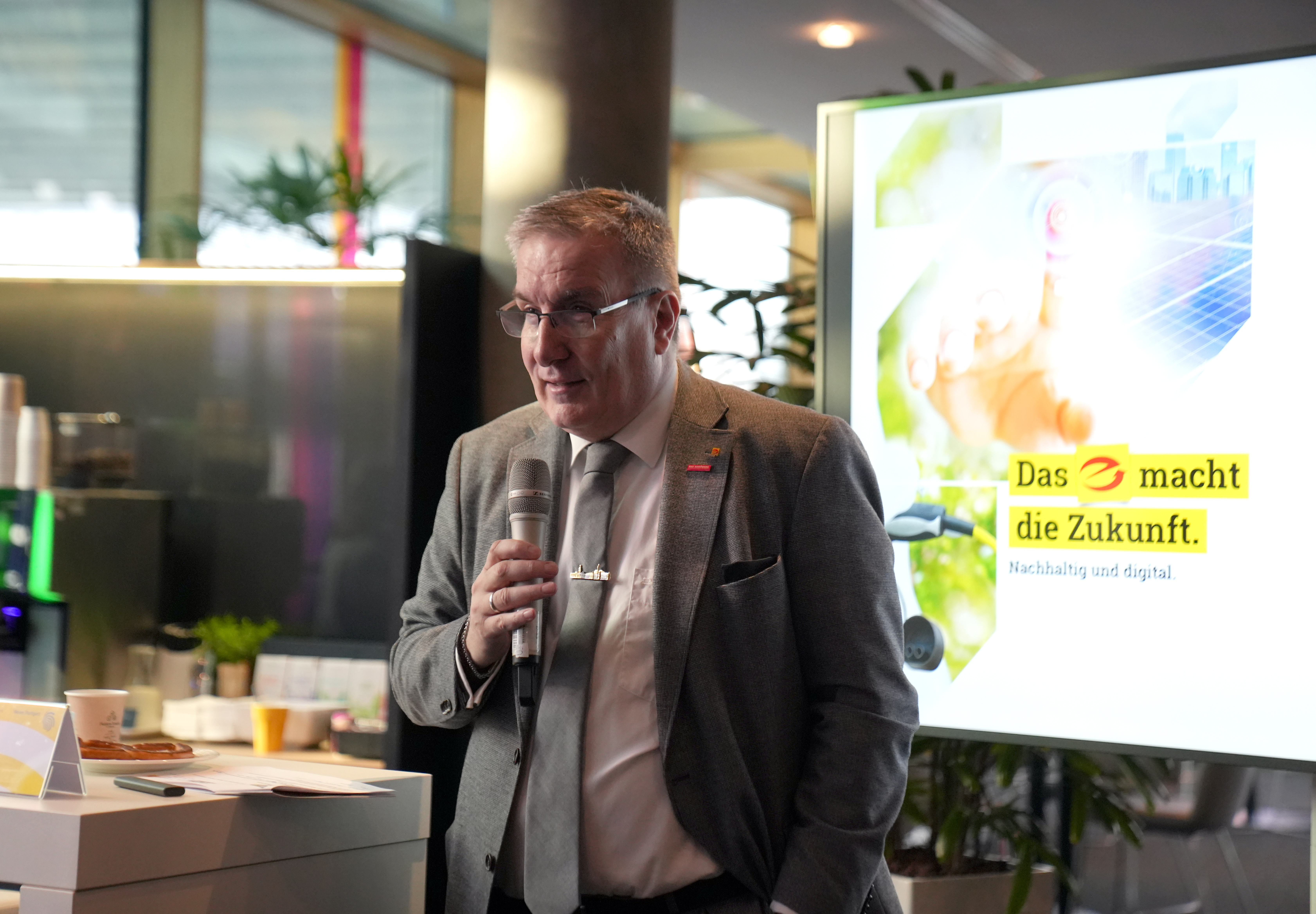 Thomas Bürkle, Präsident des Fachverbands Elektro- und Informationstechnik Baden-Württemberg, sprach über die zentrale Rolle der Elektrobranche in der Energiewende und die Bedeutung ganzheitlicher Gebäudesysteme. | Bildnachweis: Landesmesse Stuttgart GmbH & Co. KG