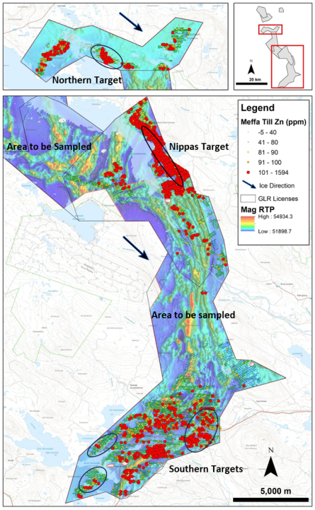 Abbildung 3: Neu identifizierte Zink-Gletscher-Geschiebemergel-Pfadfinder-Anomalien im Projekt Storjuktan