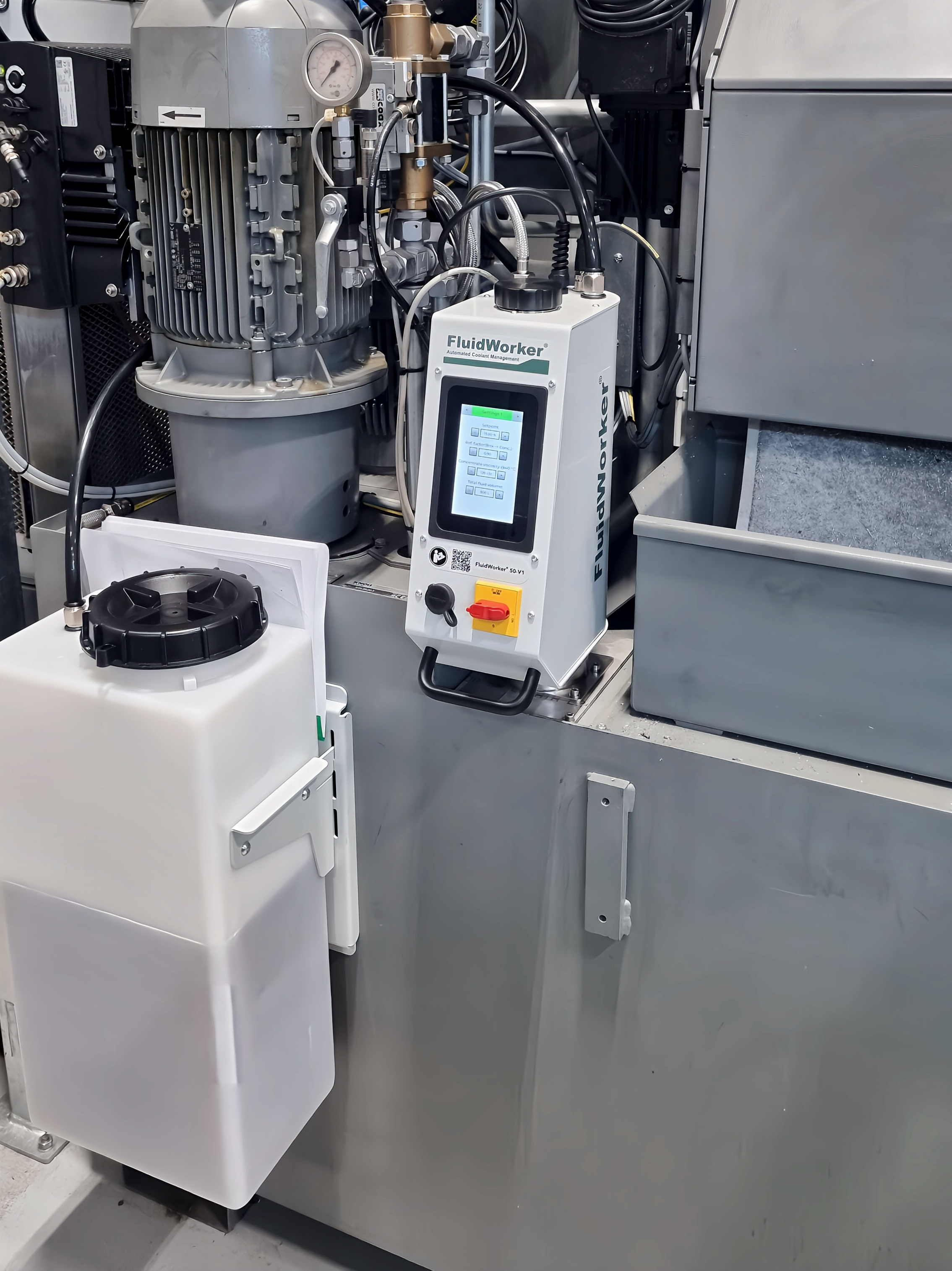 Der FluidWorker® 50 befüllt Maschinentanks regelmäßig mit der richtigen Mischung Kühlschmierstoff