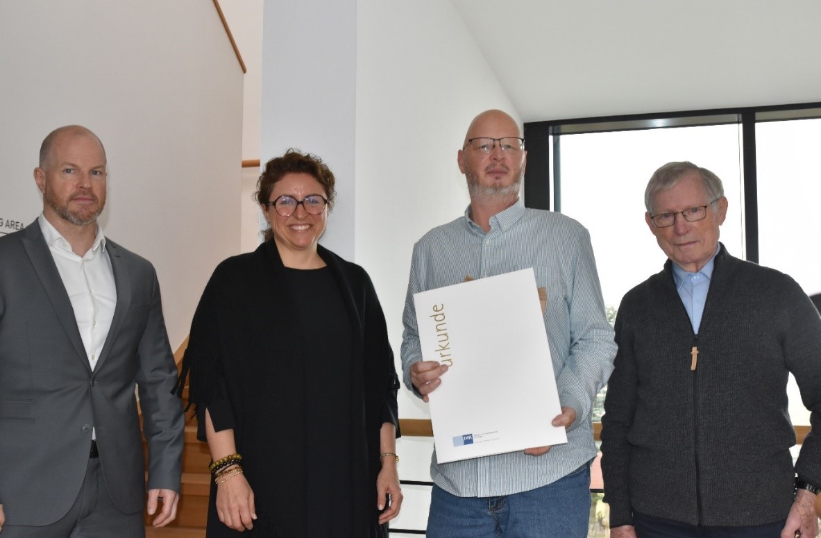 Abb. 1: Die Geschäftsleitung von AERO-LIFT ehrte Michael Abt für seine 25-jährige Firmenzugehörigkeit.