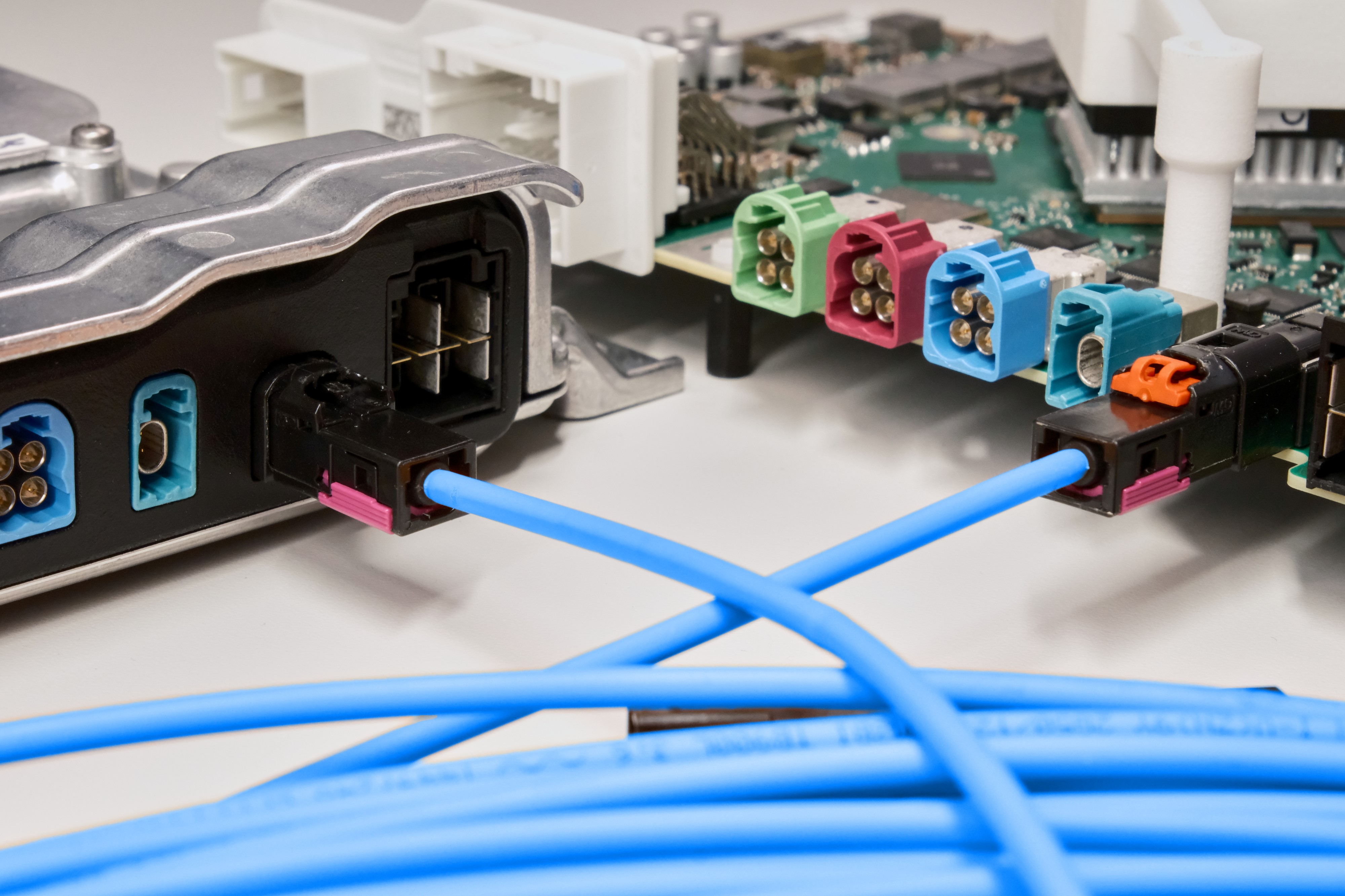 ZF hat seinen Hochleistungsrechner ProAI für optisches Multi-Gigabit-Ethernet in Automobilanwendungen weiterentwickelt. Mit neu entwickelten Chips und Steckern können Daten über automobiltaugliche Glasfasern nach Standard IEEE 802.3cz übertragen werden. Entwicklungspartner sind der deutsche Automobilzulieferer MD Elektronik sowie das spanische Halbleiterunternehmen KD. / Bilder: ZF