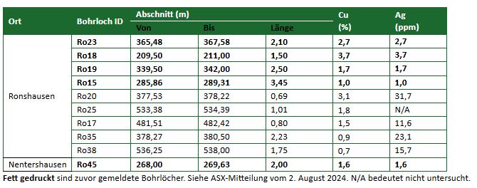 Tabelle 1: Ausgewählte Bohrlöcher.
