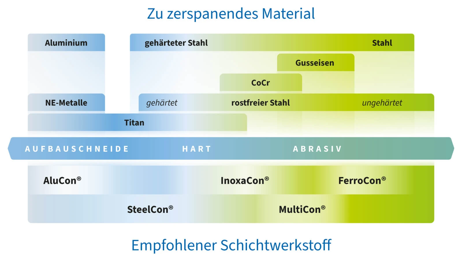 Gehärteter Stahl, rostfreier Stahl, Guss oder gar Titan und Aluminium – CemeCon bietet immer die passende Lösung. Mit MultiCon® schließt CemeCon für die Stahlbearbeitung die Lücke zwischen den HiPIMS-Schichtwerkstoffen FerroCon® und InoxaCon®.
