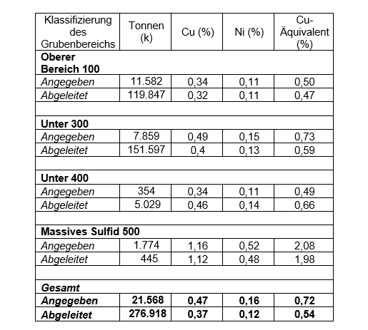 Tabelle 1. Historische, durch Grubenbeschränkungen begrenzte Mineralressourcenschätzung gemäß Puritch et al (2020)