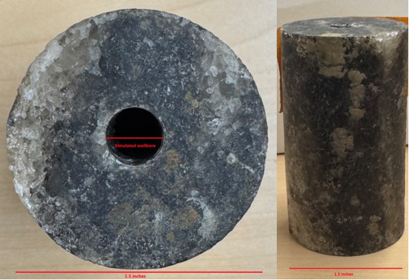 bbildung 1. Vorbereitete Kernprobe für geomechanische Untersuchungen mit einer dreiachsigen Kernhaltevorrichtung