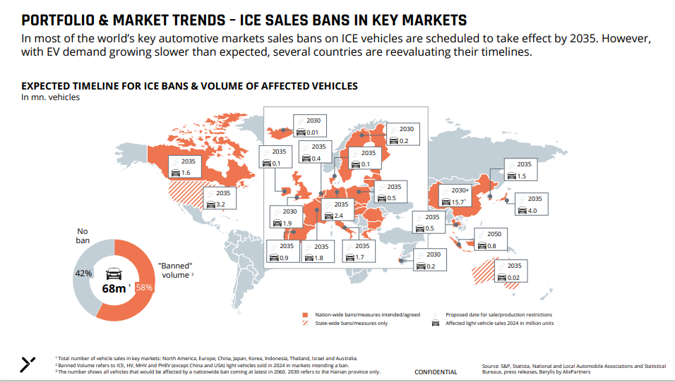 Übersichtskarte mit den wichtigsten Kennzahlen zum weltweiten ICE-Ausstieg