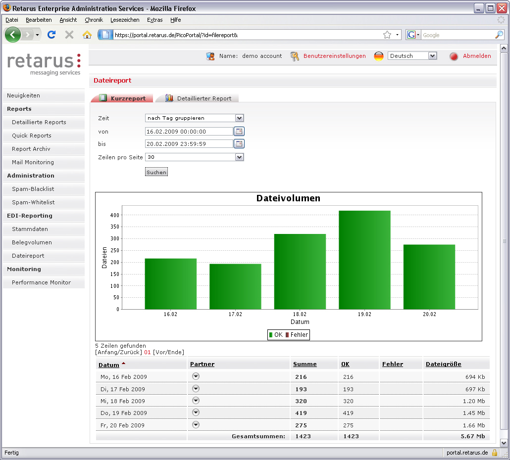 Retarus WebExpress unterstützt jetzt auch Unicode: Über das EAS-Portal von Retarus kann Galbani bequem auf statistische Daten zu allen elektronischen Transaktionen zugreifen. Quelle: Retarus