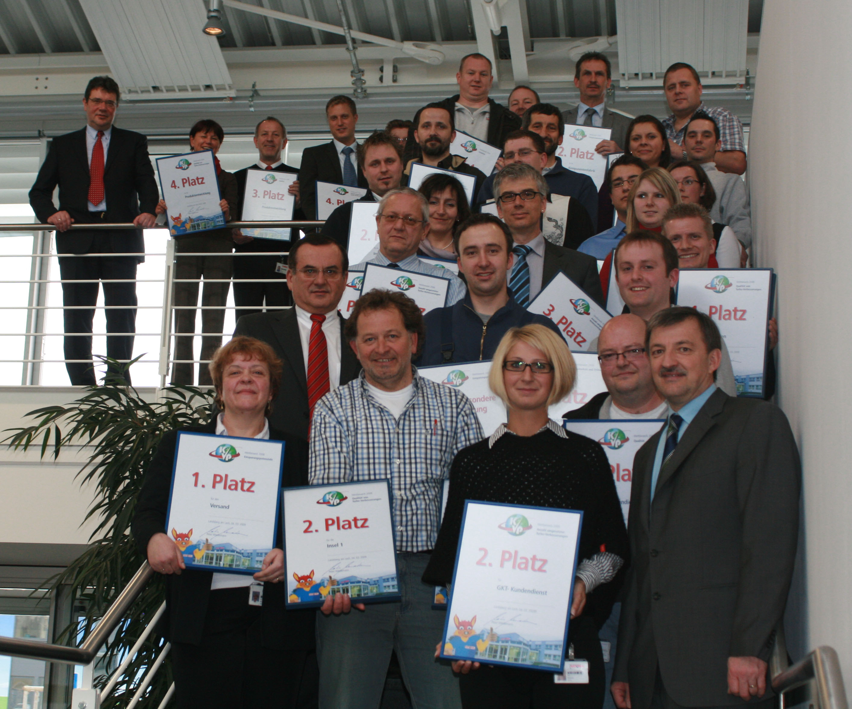 Peter Wiedemann, Vorstandsmitglied Technik (rechts unten), mit den Gewinnern des kontinuierlichen Verbesserungsprozesses bei Rational