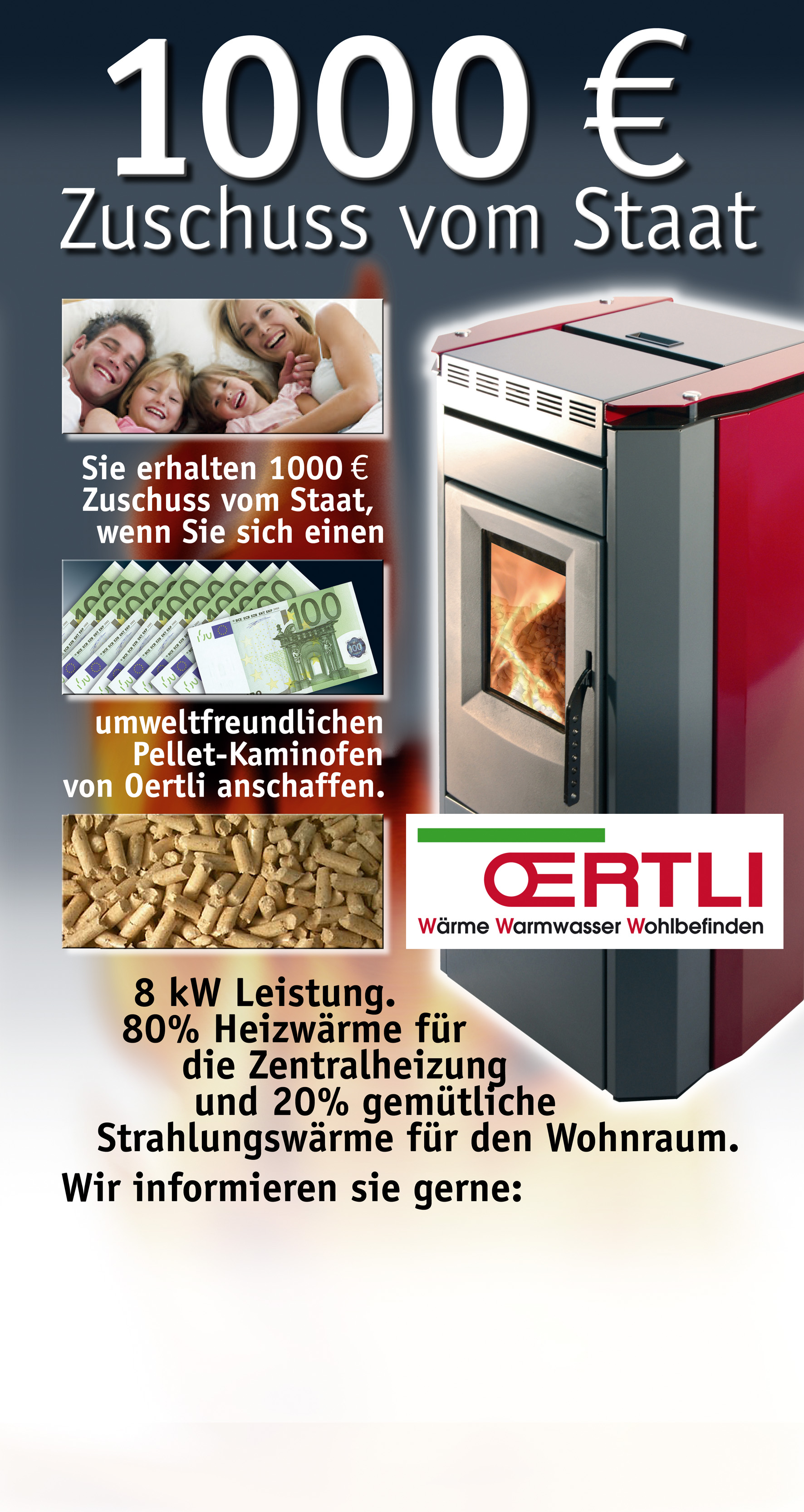 Pelletofen PKO 8 von OERTLI und 1000.- Euro vom Staat
