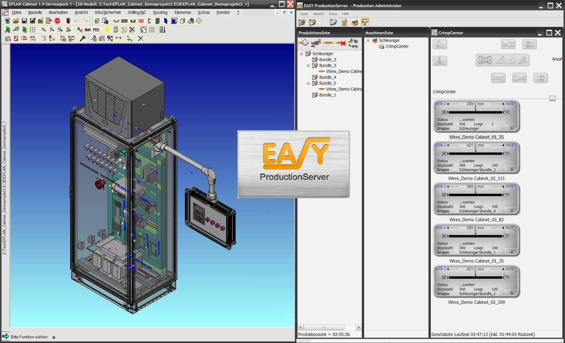 Die in EPLAN Cabinet ermittelten Drahtlängen und Informationen zur Aderbündelung werden zur Konfektionierung an den EASY ProduktionServer übergeben