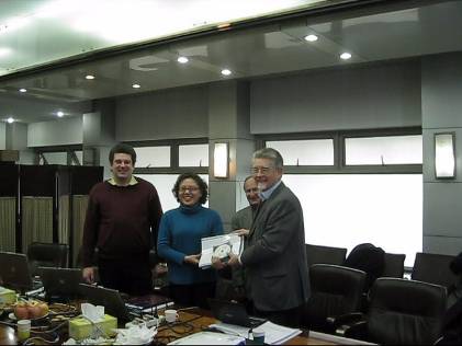 Dr. habil. Rauschenbach, Prof. Zhang, Prof. Birkle und Prof. Steusloff bei der Übergabe der Projektergebnisse an die Wasserbehörde Peking