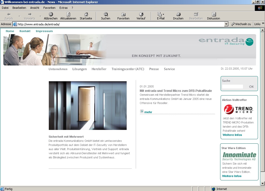 Seit März 2005 online: der neue Internetauftritt der entrada Kommunikations GmbH.