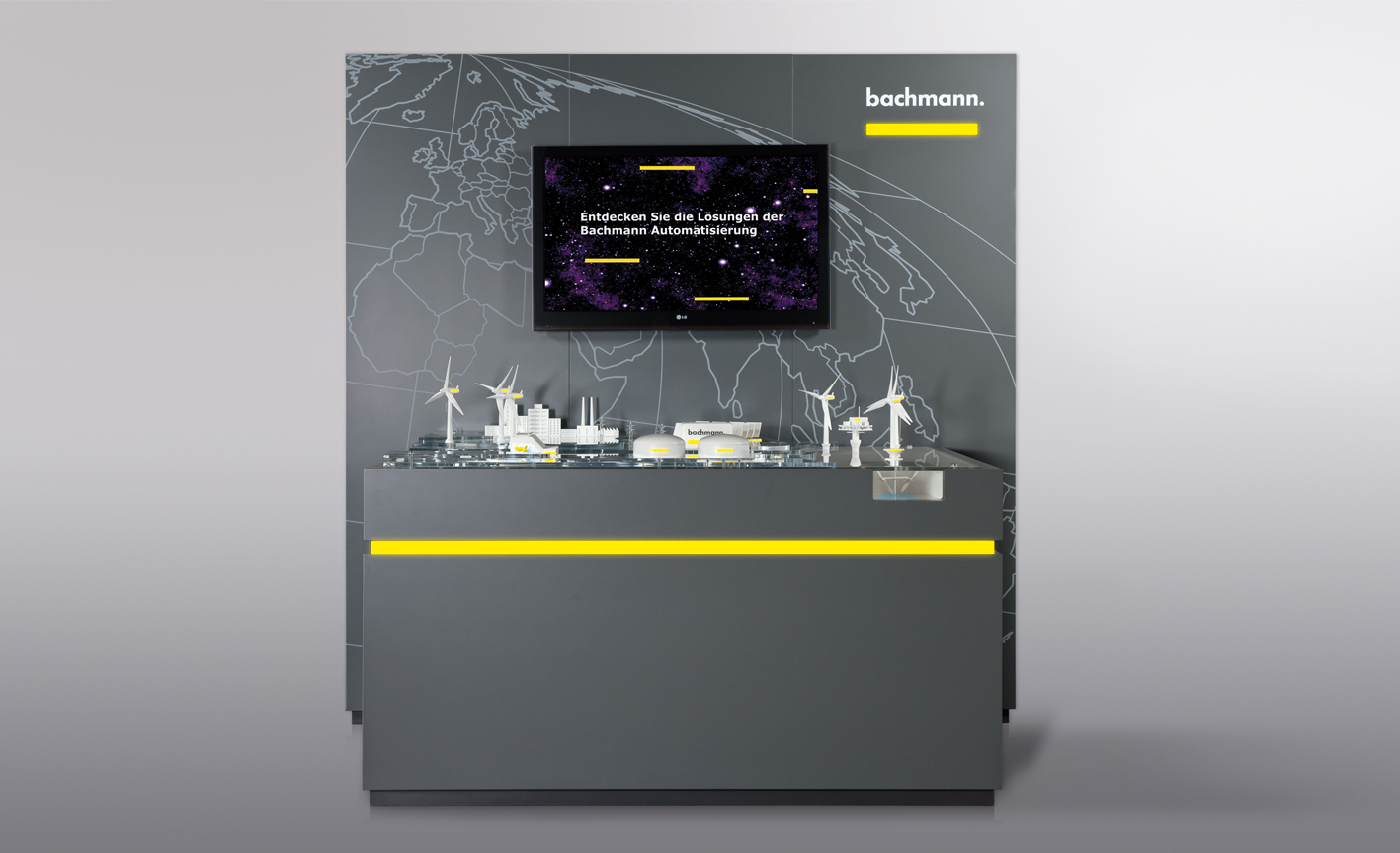 "Energieparkvernetzung": Das Hightech-Exponat von Flad & Flad veranschaulicht das Portfolio vom Bachmann electronic mit realen und virtuellen Mitteln