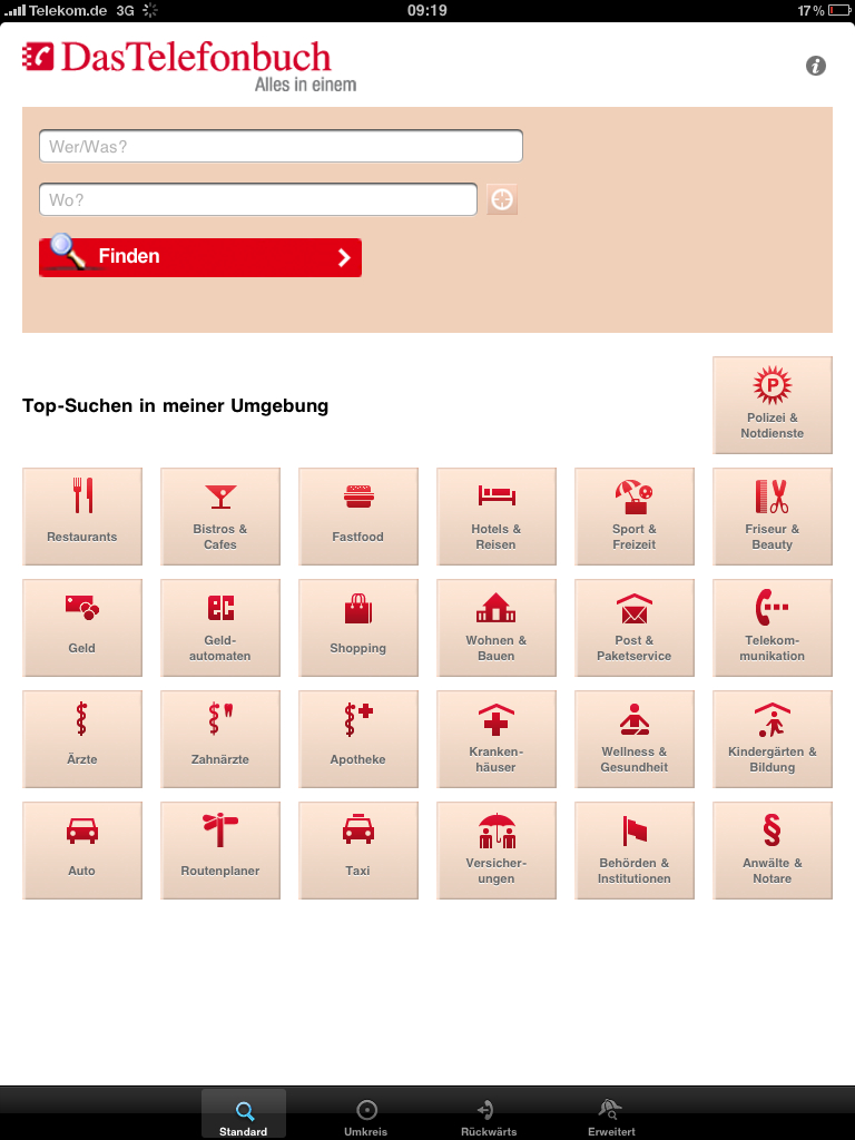 Startseite der DasTelefonbuch-iPad-Applikation