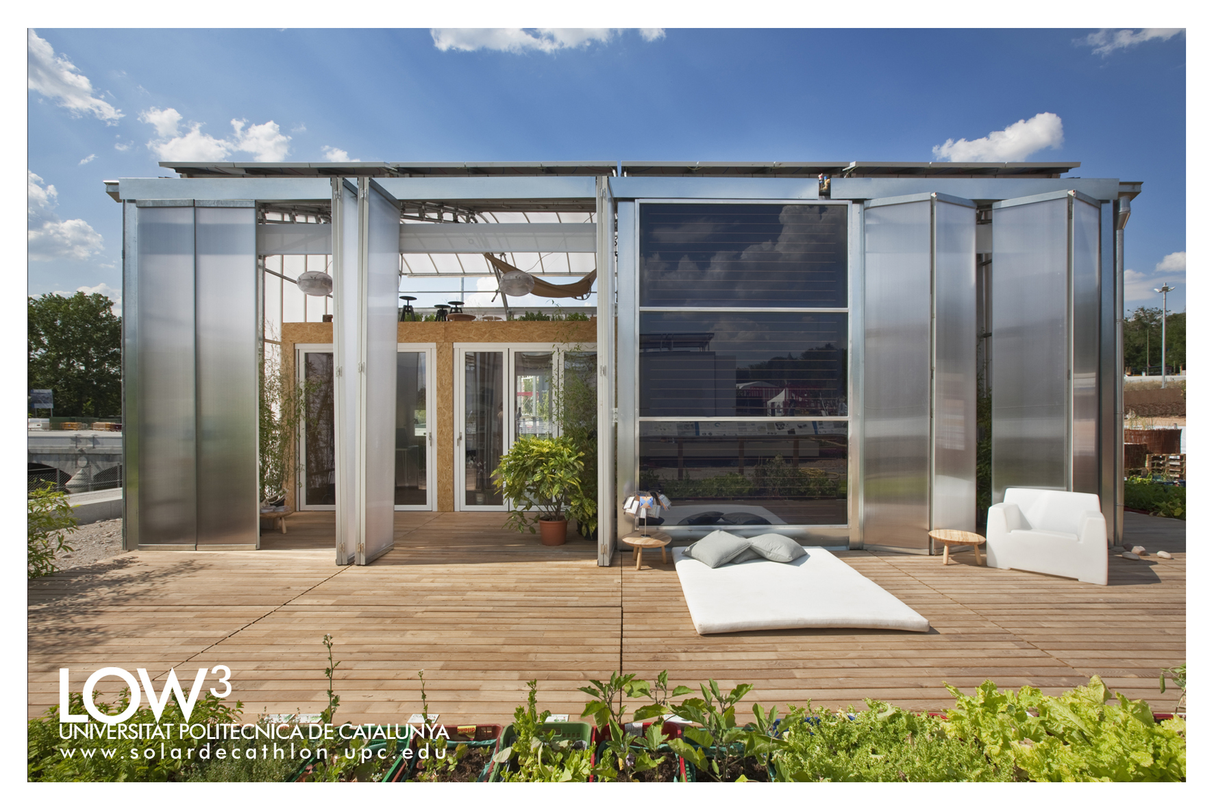 In die Fassade des LOW3-Hauses wurden optisch ansprechende Solarkollektoren von REHAU integriert, UPC Universitat Politècnica Catalunya