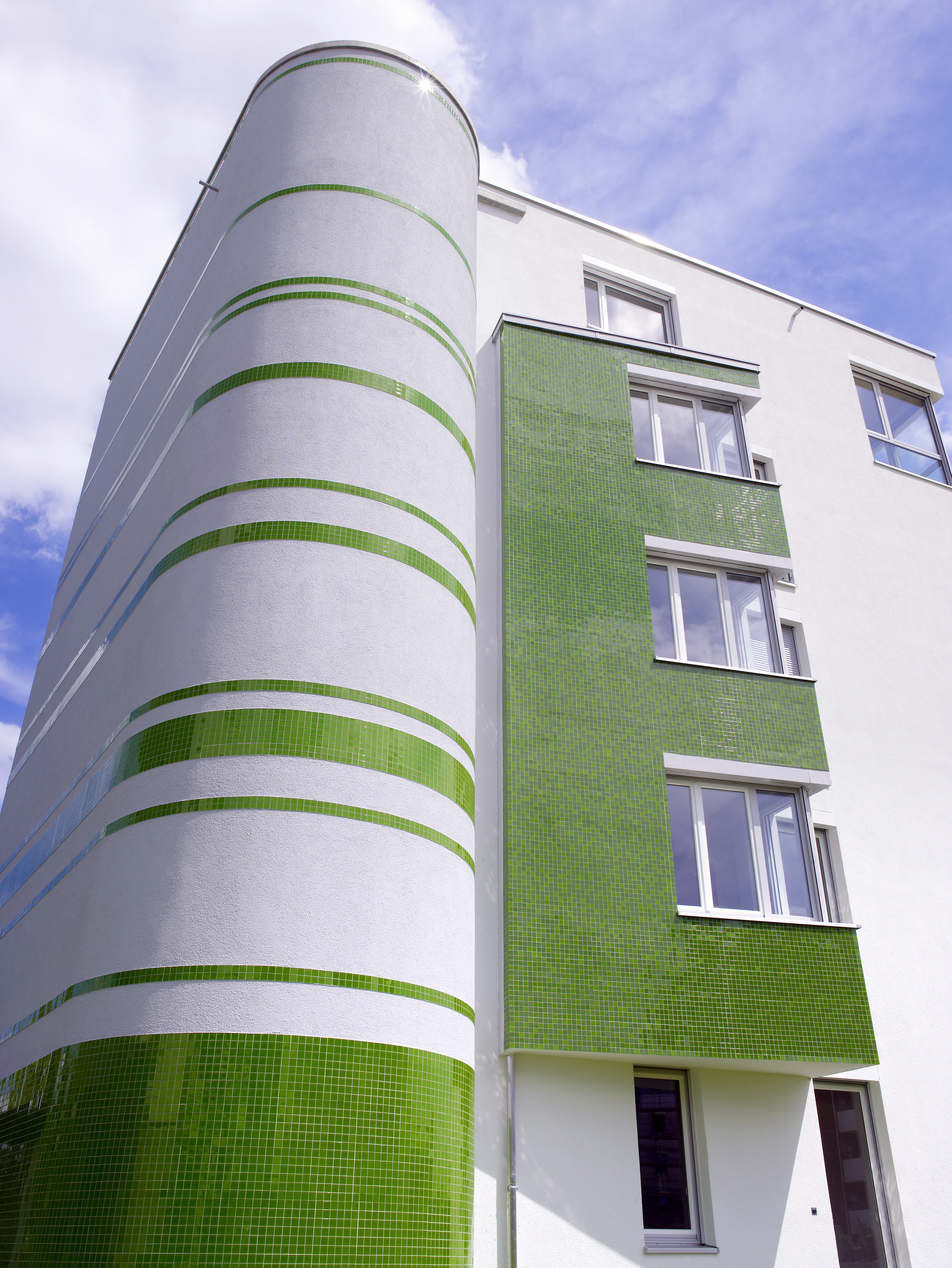 Die Gebäudehülle wurde nach dem Entwurf des Karlsruher Architekten Patrick Humpert als Kombinationsfassade ausgeführt, (Foto: Caparol Farben Lacke Bautenschutz/Uwe Keller)