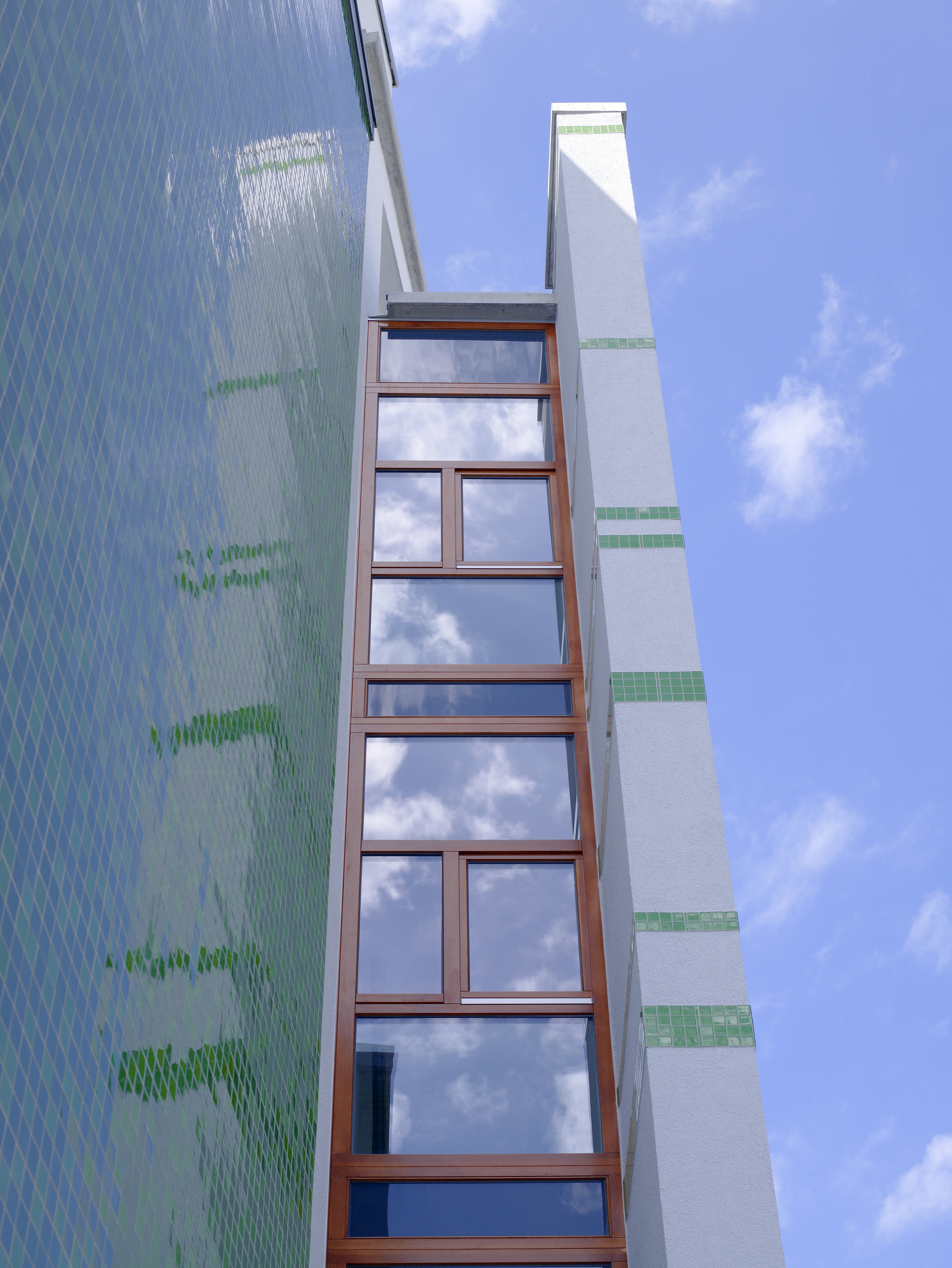 Für die exakte Positionierung der Verlegeeinheiten sorgt eine transparente Schutzfolie auf der Sichtseite der Mosaike, die nach dem Einbetten abgezogen wird. Danach werden die Fugen mit speziellen Systemspachtelmassen im Schlämmverfahren verfüllt und abgerakelt, (Foto: Caparol Farben Lacke Bautenschutz/Uwe Keller)