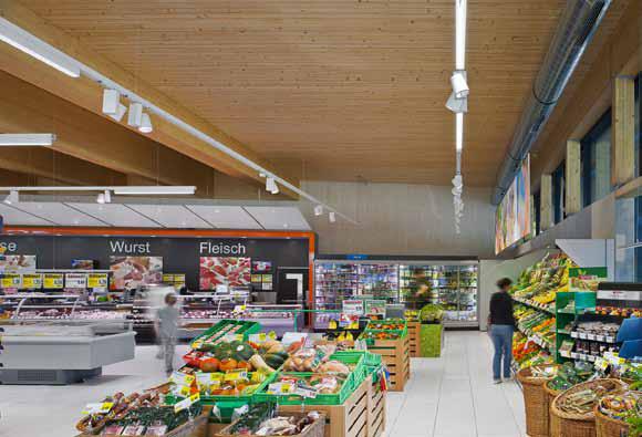 Das Lichtbandsystem Tecton LED und die LED-Strahler SL 1000 gewährleisten eine hohe Lichtqualität und ansprechende Warenpräsentation bei gleichzeitig geringem Energieverbrauch