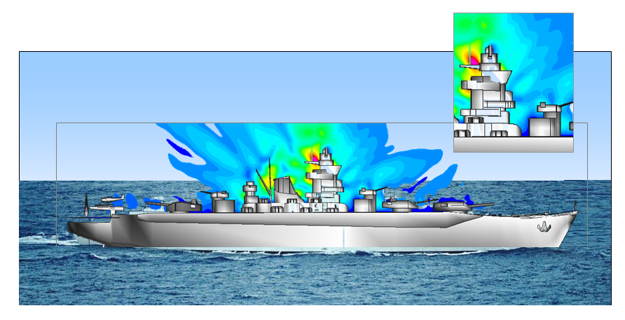 Strahlungsfelder einer Antenne im Nahbereich auf einem Marinekreuzer