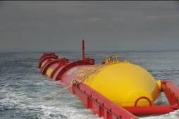 Meereswellen als regenerative Energiequelle: Die Schaeffler Gruppe Industrie ist Entwicklungspartner für den Pelamis-Wellenenergiekonverter. Die einzelnen Segmente werden durch Lagereinheiten miteinander verbunden, die permanent wechselnden Belastungen von bis zu mehreren hundert Tonnen ausgesetzt sind (Quelle: Pelamis Wave Power)