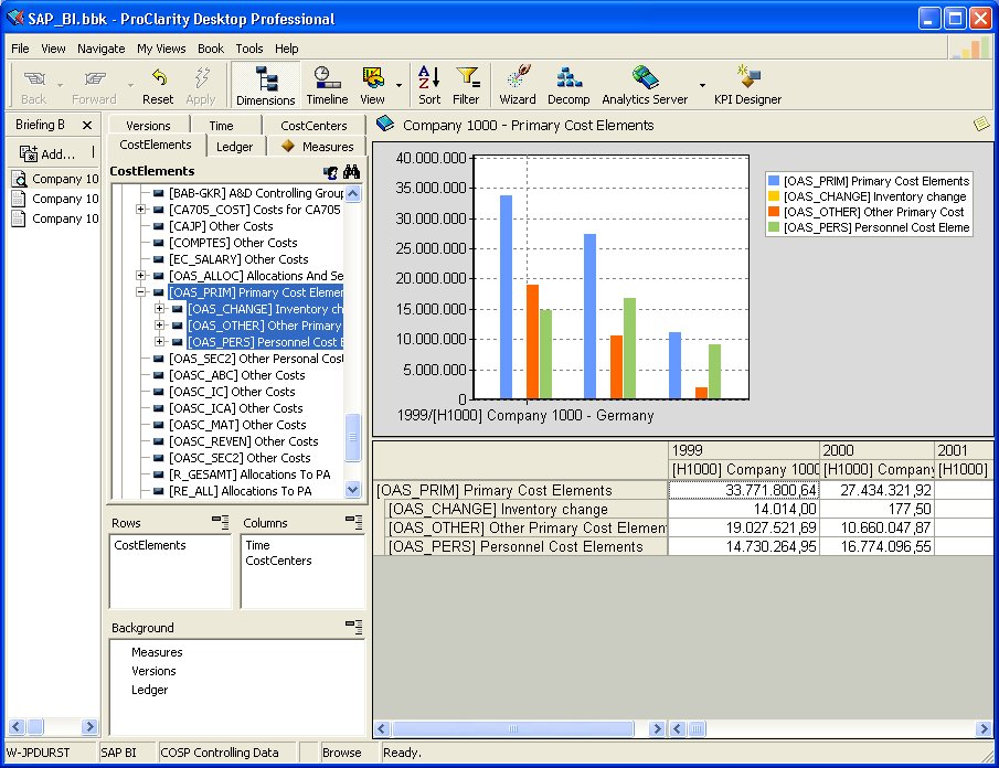 OLAP Cube, der mit Daten des SAP R/3 Standart-Datenbank IDES erzeugt wurde. Die Daten werden mit dem S4U Connector ausgelesen (mit einem DTS Paket) und in eine Microsoft SQL Datenbank übertragen. Der verwendete Browser ist ProClarity.