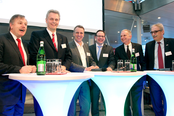 v.l.n.r. Harry Evers, Landesinitiative Mobilität | Prof. Dr. Kasten Lemmer, Deutsches Zentrum für Luft- und Raumfahrt e.V. | Stefan Wenzel, Niedersächsischer Minister für Umwelt, Energie und Klimaschutz | Thomas Krause, Wolfsburg AG | Prof. Dr. Leohold, Leiter Konzernforschung Volkswagen AG | Michael Strugala, Robert Bosch GmbH