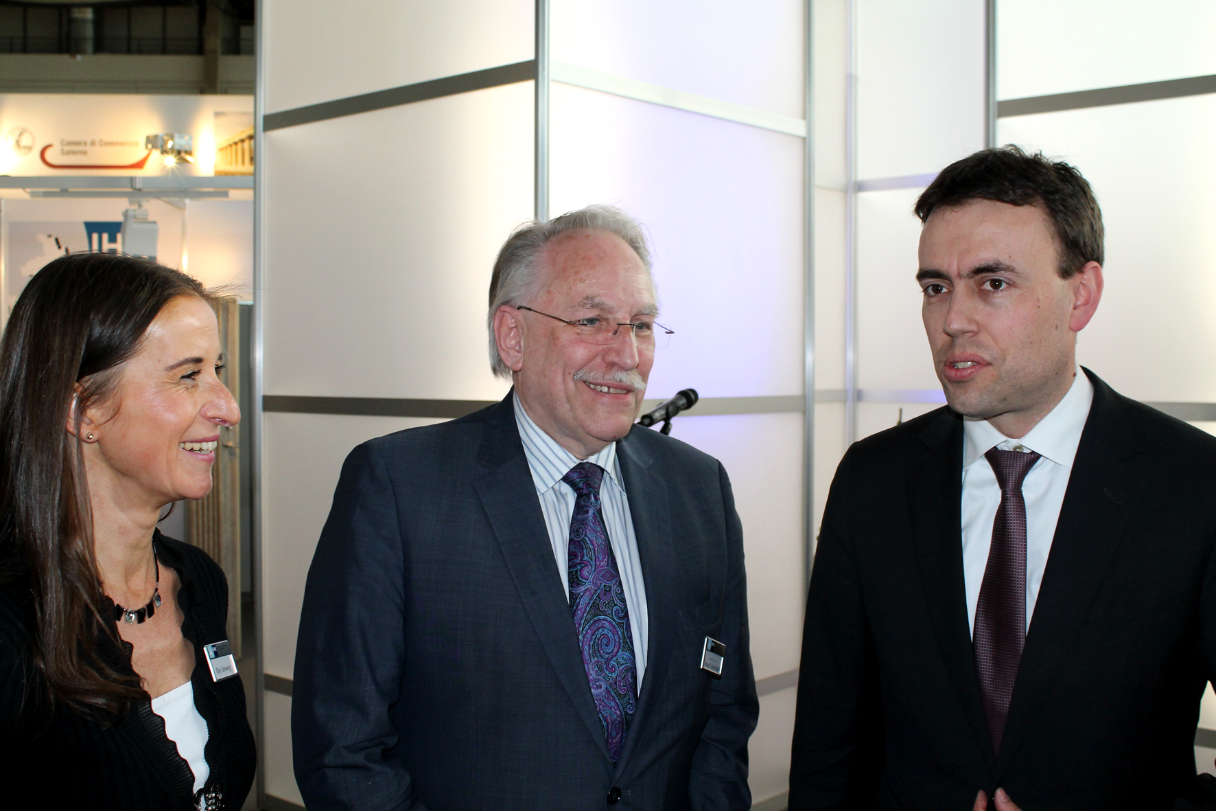 Treffpunkt IHK-Gemeinschaftsstand (von links): Elke Schweig, Hauptgeschäftsführerin der IHK Heilbronn-Franken, Prof. Dr. Dr. h.c. Harald Unkelbach, Präsident der IHK Heilbronn-Franken und Dr. Nils Schmid, Finanz- und Wirtschaftsminister des Landes Baden-Württemberg (Fotos: IHK)