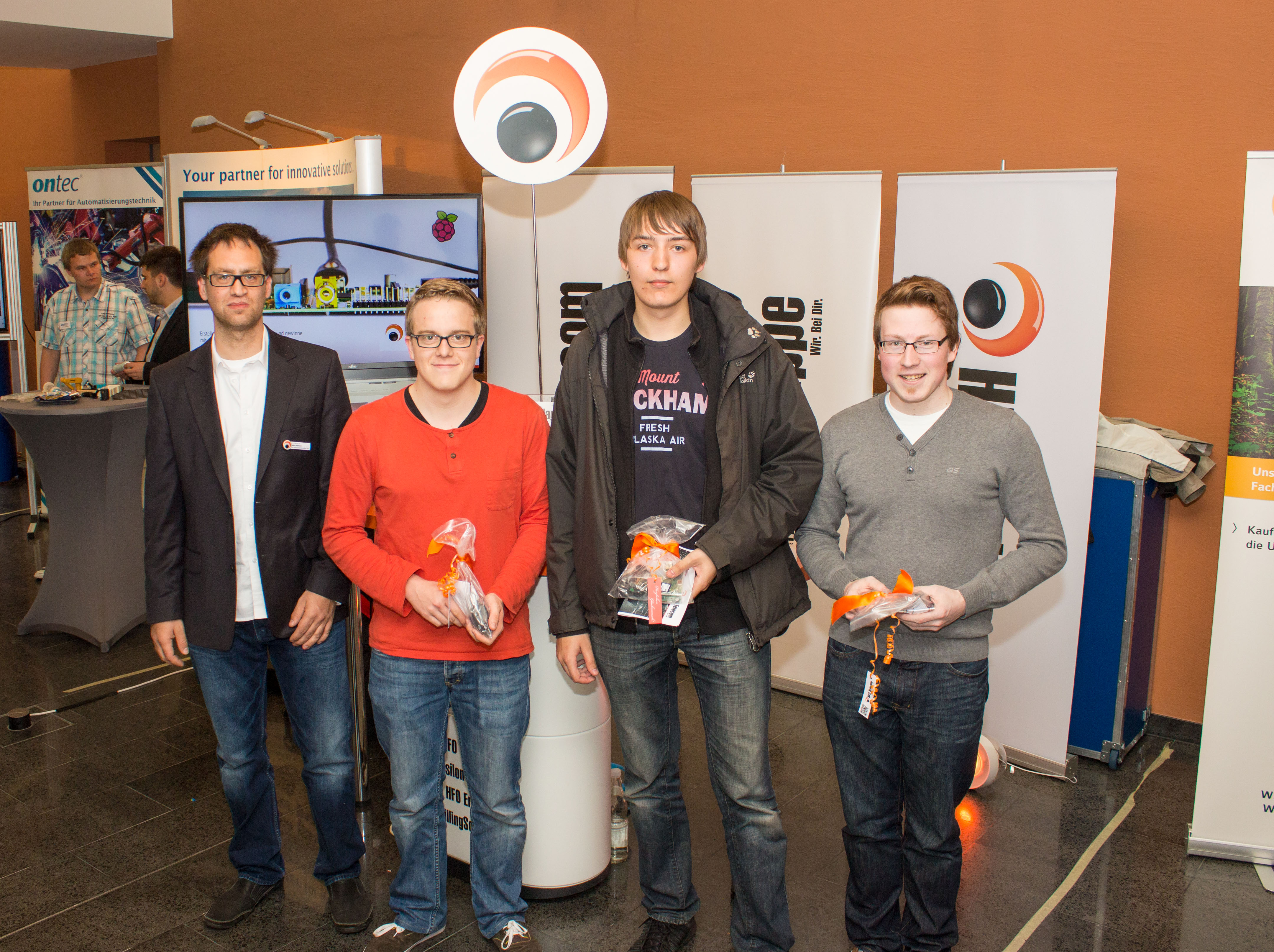 Unternehmerbörse 2014 - Mike Hummel mit den Gewinnern des HFO-Gewinnspiels