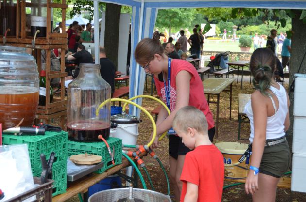 Hans-Georg Schaaf zeigt den Besuchern, wie man Obst zu einem "Zaubertrank" verarbeiten kann, der natürlich auch verkostet werden kann / Hans-Georg Schaaf