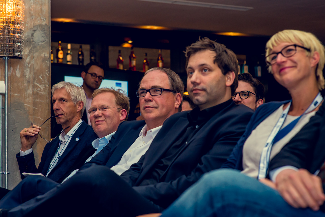 Herbert Behrens (Die Linke), Sebastian Turner (Herausgeber und Gesellschafter des Tagesspiegel, Moderator des Panels), BVDW-Präsident Matthias Ehrlich, Lars Klingbeil (SPD), Nadine Schön (CDU)