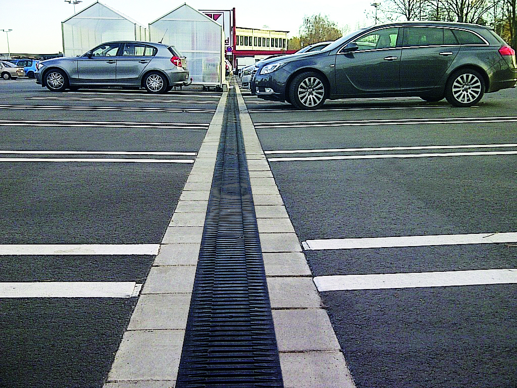 Entwässerung eines Parkplatzes durch Recyfix Monotec